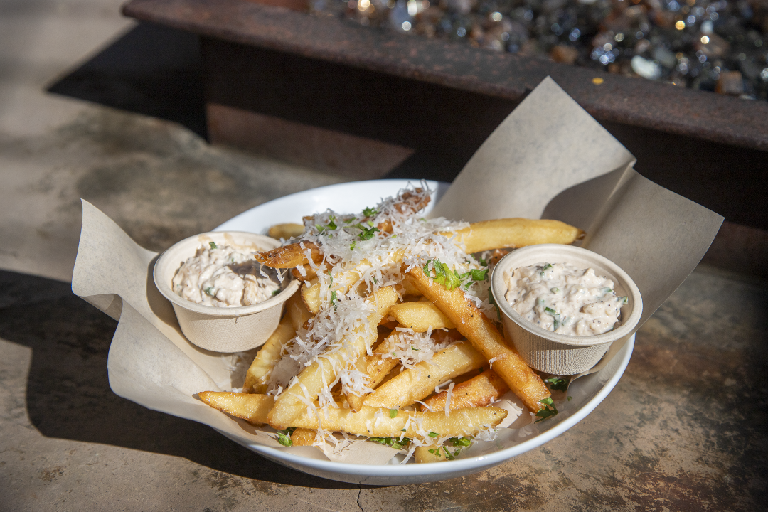 Parmesan, chopped garlic, rosemary, white truffle oil, truffle aioli.